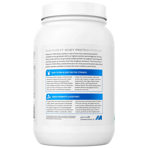 To get maximum performance from the whey isolate, precise doses of Amylase and Papain are included in the formula to support digestion of carbohydrates and proteins. Also infused into Platinum 100% Whey Isolate is a probiotic strain Saccharomyces boulardii with 2.5 billion CFUs per serving. No matter the time, every protein shake delivers quick amino acid replenishment, providing you the critical building blocks your muscles need to perform at their highest level.