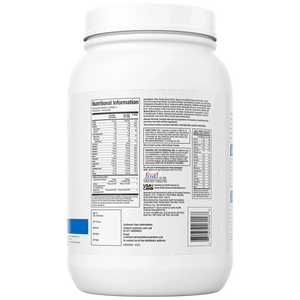 Ingredients: Whey Protein Isolate (91%), Natural and Artificial Flavours (Chocolate, Vanilla), Cocoa (Processed with Alkali), Gum Blend (Cellulose Gum [Stabilizer], Xanthan Gum [Emulsifier], Carrageenan [Emulsifier]), Soy or Sunflower Lecithin (Emulsifier), Probiotic and Enzyme Blend (0.6%) (Saccharomyces boulardii, Amylase [from Aspergillus flavus var. oryzae, Whole], Papain [from Carica papaya, Fruit]), Salt (Flavour Enhancer), Sucralose (Sweetener), Vitamin and Mineral Blend (0.2%) (L-Ascorbic Acid, Zinc Oxide, Nicotinamide, Ergocalciferol, Calcium D-Pantothenate, D-Biotin, Pyridoxine Hydrochloride, Cyanocobalamin, Riboflavin, Thiamine Hydrochloride, Folic Acid), Silicon Dioxide (Anti-Caking Agent).