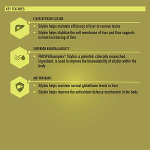 PHOSPHOcomplex silybin is a complex of silybin and phosphatidylcholine. Silybin protects the liver by conserving the natural glutathione level (antioxidant), whereas phosphatidylcholine repairs the damaged liver cell membranes. Licorice, vitamin E, and amla are powerful anti-oxidants that protect the liver from free radical damage.