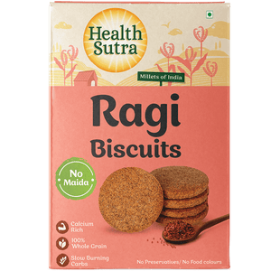 Health Sutra Ragi biscuits are made from 100% whole grain Ragi. Ragi is a rich source of Calcium and Dietary Fibre that keep your family active & healthy. Their Smart Carbohydrates burn slowly and keep you full for a longer time. These biscuits are a perfect blend of Health and Taste.