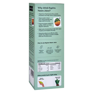 The Neem Tree has been known as the ‘Village Dispensary’ for many years in ancient Indian villages due to its medicinal benefits. Our juice aims to bring you all these health and wellness benefits in a bottle – quick and easy to use at your convenience. Kapiva Neem Juice is made from organically grown ingredients and does not contain any synthetic colors or flavors.