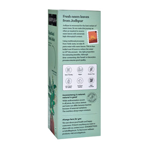 Kapiva Neem Juice is extracted from fresh, Rajasthani Neem leaves – we take great care to ensure that no dry leaves are used in order to bring you a juice packed with all the health and wellness benefits of fresh Neem. Our juice is free of any added flavors or colors. Kapiva guarantees all the natural goodness of Neem, straight from Rajasthani trees to your homes.