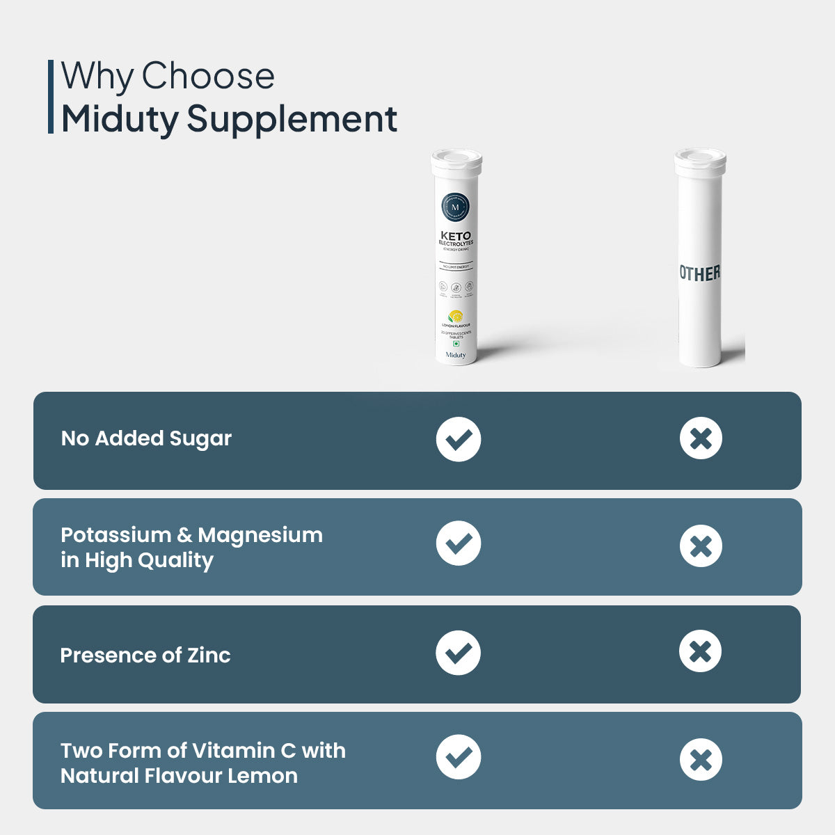 Miduty Keto Electrolytes drink with no added artificial flavor | Effervescent tablets with all the essential electrolytes | Blend of electrolytes such as Potassium, Calcium, Magnesium, Sodium, and Phosphate.