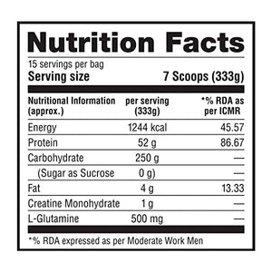 • A high-calorie bodybuilding shake fortified with muscle building protein, carbohydrates, creatine monohydrate and essential nutrients.Provides 17g of BCAAs — to aid in muscle growth, repair, and recovery
