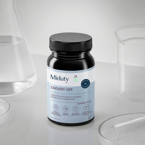 Miduty’s Cholest-Off tablets are essential for improving cardiovascular health, maintaining cholesterol levels and blood pressure, and benefiting pre-diabetic patients.