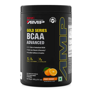 GNC Amp Gold Series BCAA Advanced - 400 gm (Kiwi Strawberry) contains 7g of Instantized BCAA in optimal 2:1:1 ratio- 3.5g Leucine, 1.75g Iso-Leucine & 1.75g Valine. It also contains 1g of L-citrulline (precursor of arginine) for better muscle strength & 1g of L-glutamine to improve recovery and immunity. Its a versatile sports drink for both pre- and post-workout.
