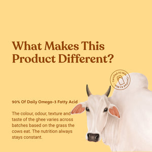 Our A2 Desi Cow Ghee, has multiple benefits from reducing joint pain to improving the condition of the heart. We procure the milk for this ghee from the Tharparkar cows – a cow breed indigenous to the Thar Desert of India. These cows are grass-fed and are not factory-farmed and are free from cross-breeding. The milk obtained through these cows has lesser fat content as compared to the milk by Jersey cows. It is easier to make ghee from Jersey cows (only 2 litres of milk required) . On the other hand, ghee made from Tharparkar, due to its lesser fat content, is much more difficult. But this ghee is much more healthier for you. We use around 7 litres of milk to make this one bottle of this ghee. This gives our Ghee its special, natural qualities and nutty flavour. Made from curd and not cream, the milk used to make this ghee is hand-churned to retain all its nutritious value. We do what’s difficult. To make health and wellness easy for you. Because when it comes to your health, we take #NoShortcuts.