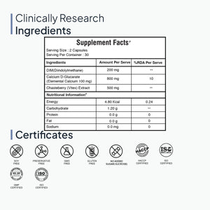 • Irregular periods, heavy bleeding, man boobs, facial hair, cystic acne, and belly fat are no longer symptoms with Miduty’s Estrogen Balance, as it is a powerful blend of Diindolylmethane, or DIM[3],Calcium-D-Glucarate, and Chaste Berry Extract [1]